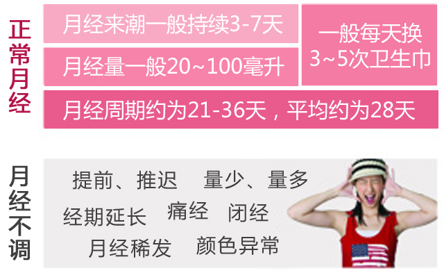 月经不调又称月经失调,妇科常见病表现为月经提前、月经推迟、月经不来、月经量多/量少、痛经和闭经等等都属于月经不调。